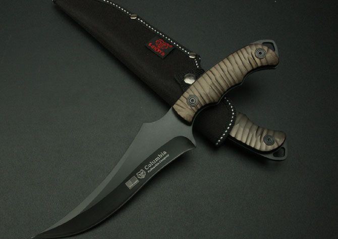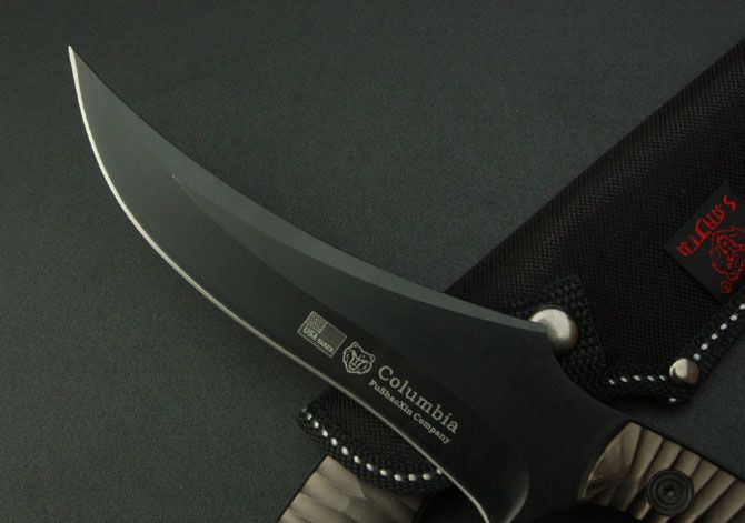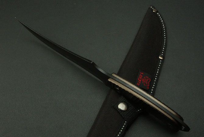 类 型: 直刀 品 牌:荣誉 全 长: 27cm 刃 长: 15cm 刃 宽: 4cm(最宽处) 柄 长: 11.3cm 刃 厚: 0.34cm 刃 材: 5Cr13Mov 硬 度: 56RHC(高硬度) 净 重: 240克(含套) 表 面: 氧化黑色 柄 材:铝柄 利 度:高度锋利,可刮汗毛 其 他:尼龙套 品 质:高品质,只供收藏